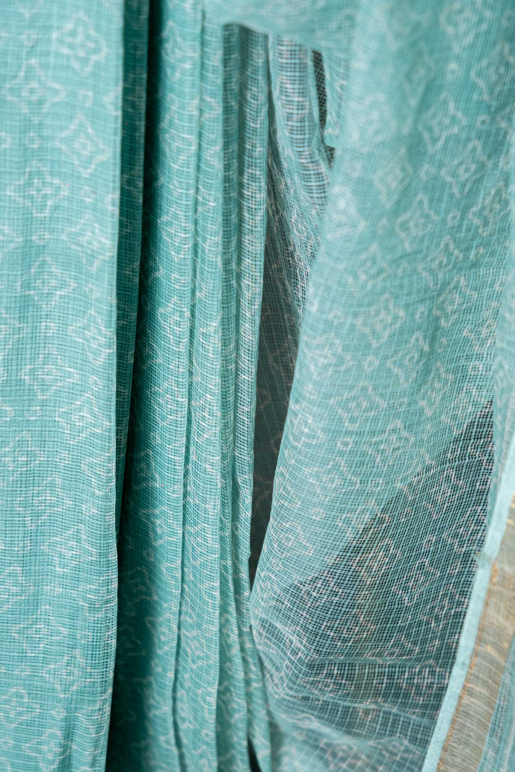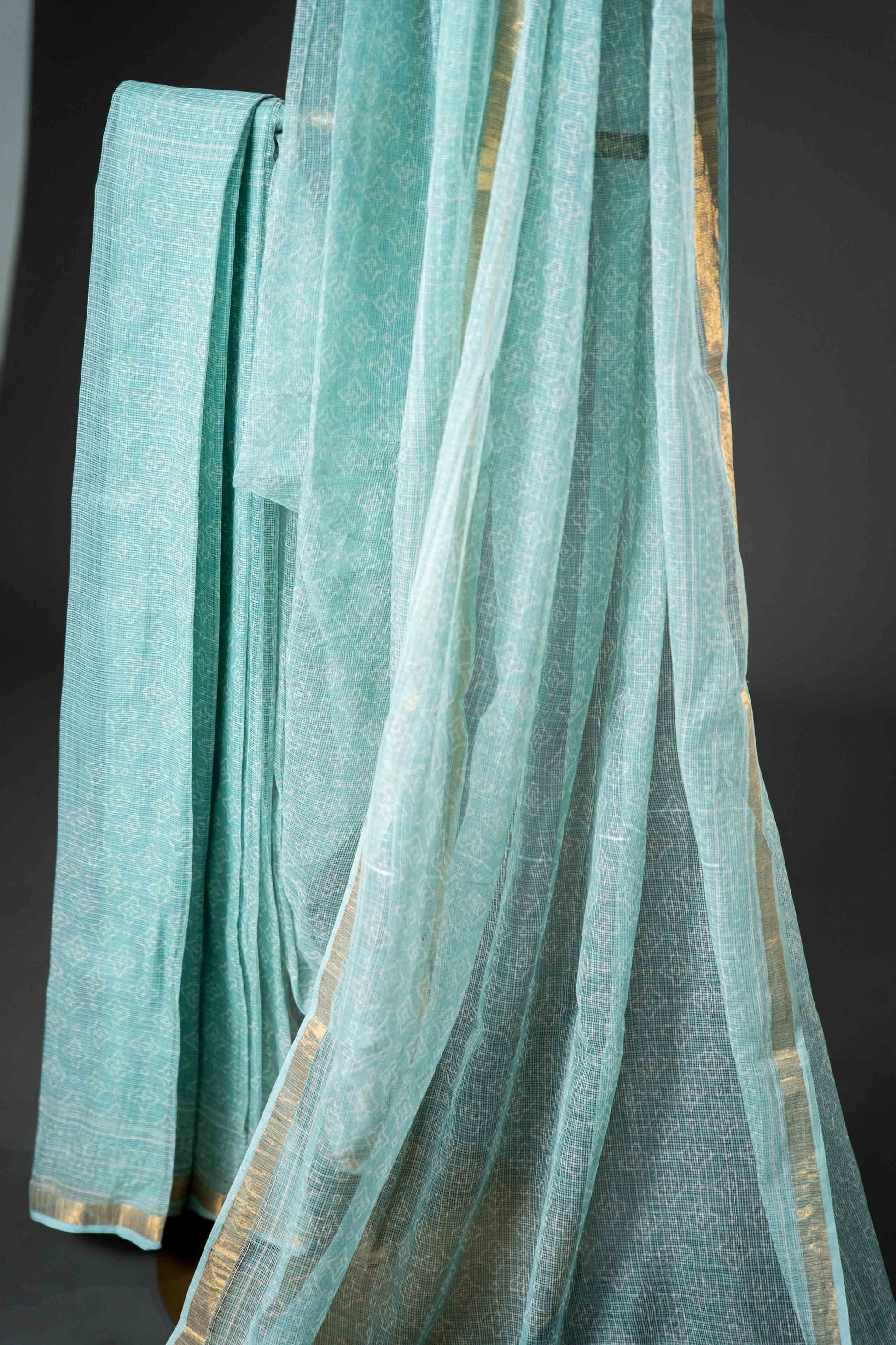 Bagru Kota Doria Saree – Pista Green Hand Block Print, Handloom Cotton