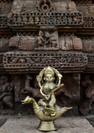 - Hand-made Dhokra Goddess Saraswati, Significance of wisdom and power.