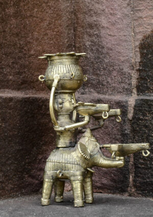 - Hand-made Dhokra lady on a beautiful elephant with Diya.