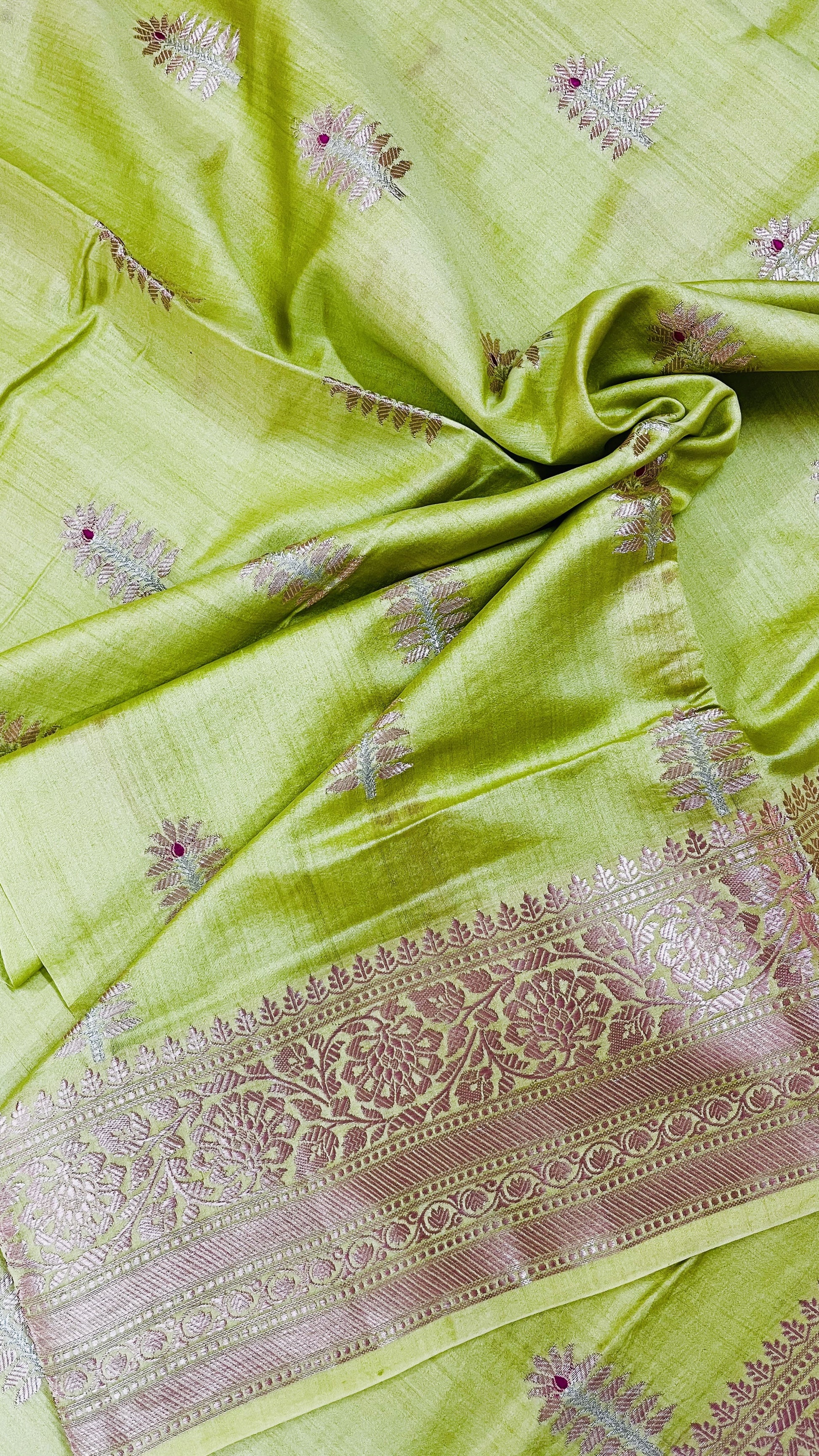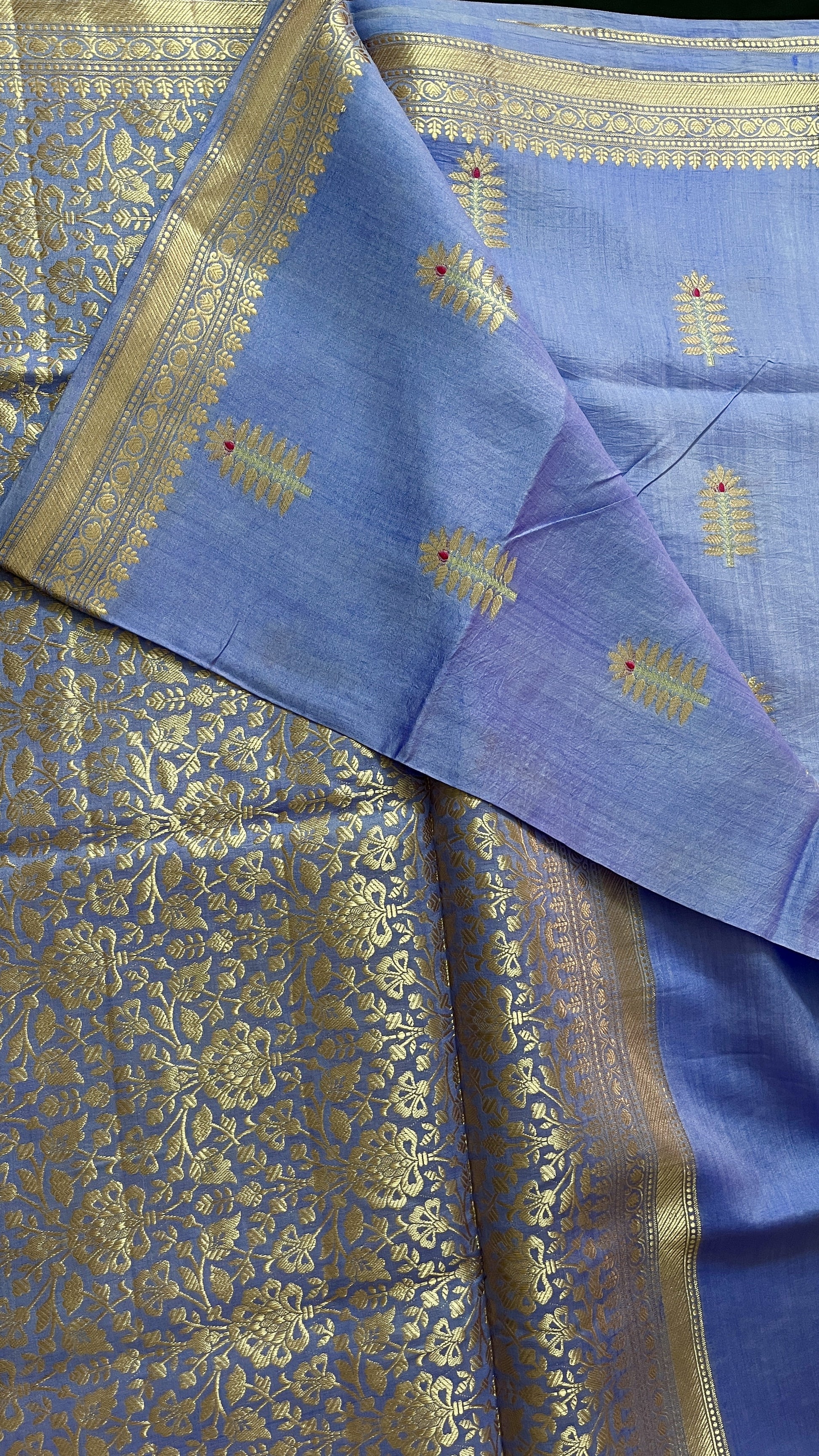 Unique and stylish, this Grey Banarsi Cotton Silk Saree stands out with its cactus-inspired motifs accented with resham. The cotton-silk fabric drapes beautifully, making it a versatile saree for elegant daytime wear or light festive occasions.