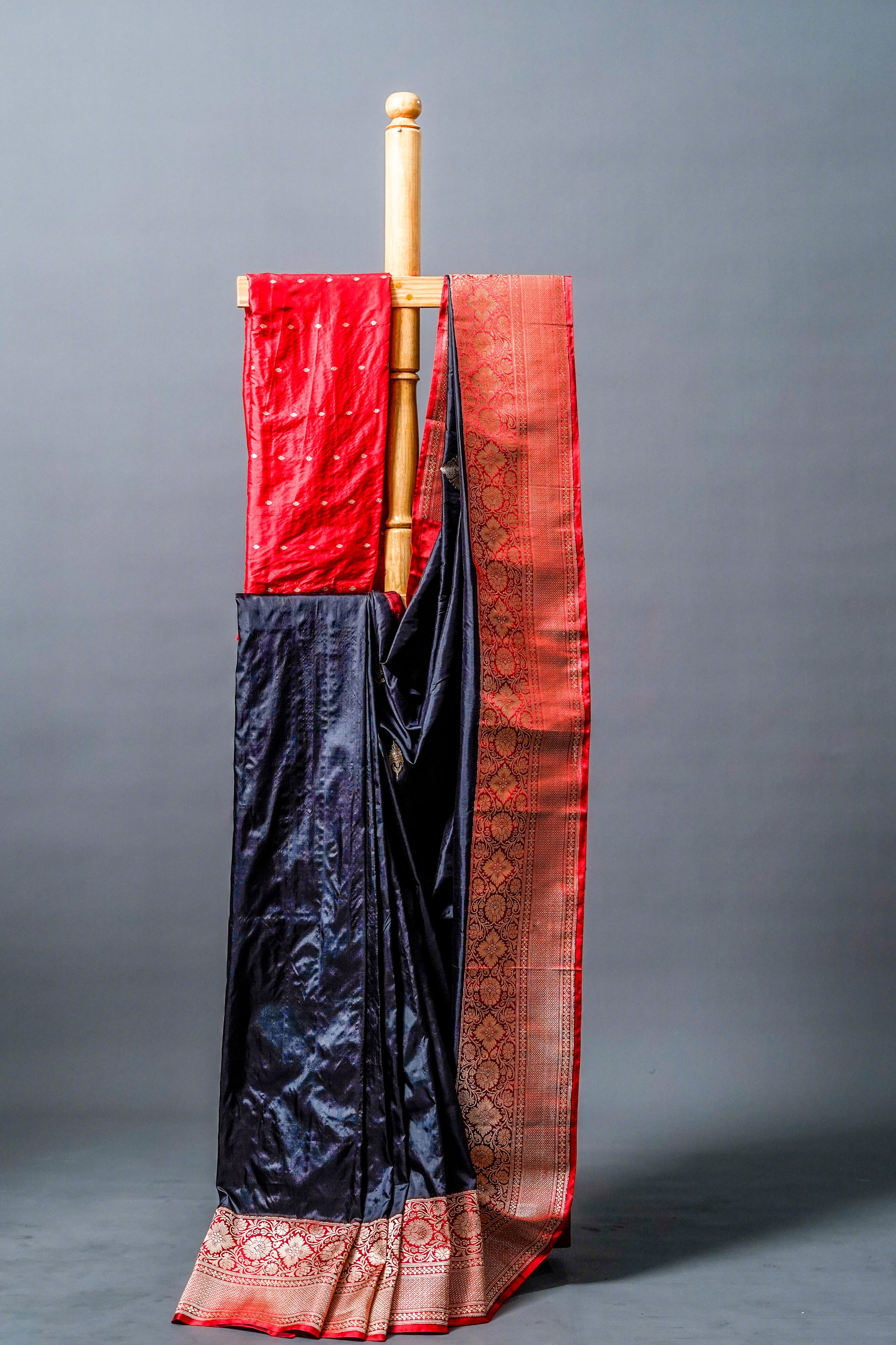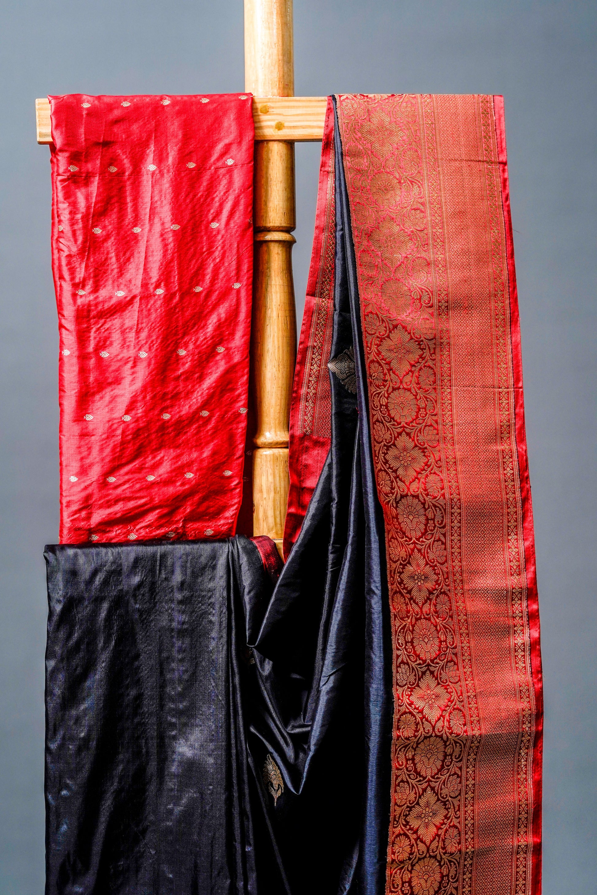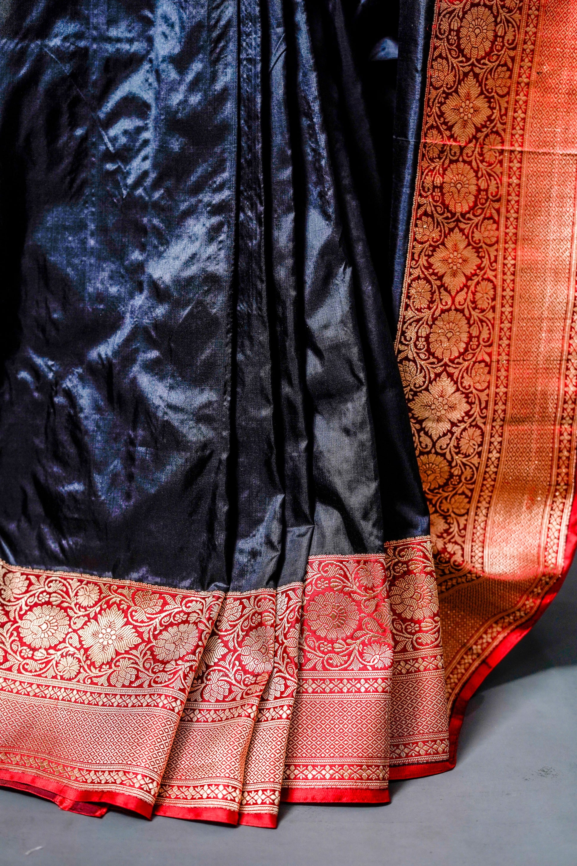 Katan Banarsi (Black with red and gold zari work)