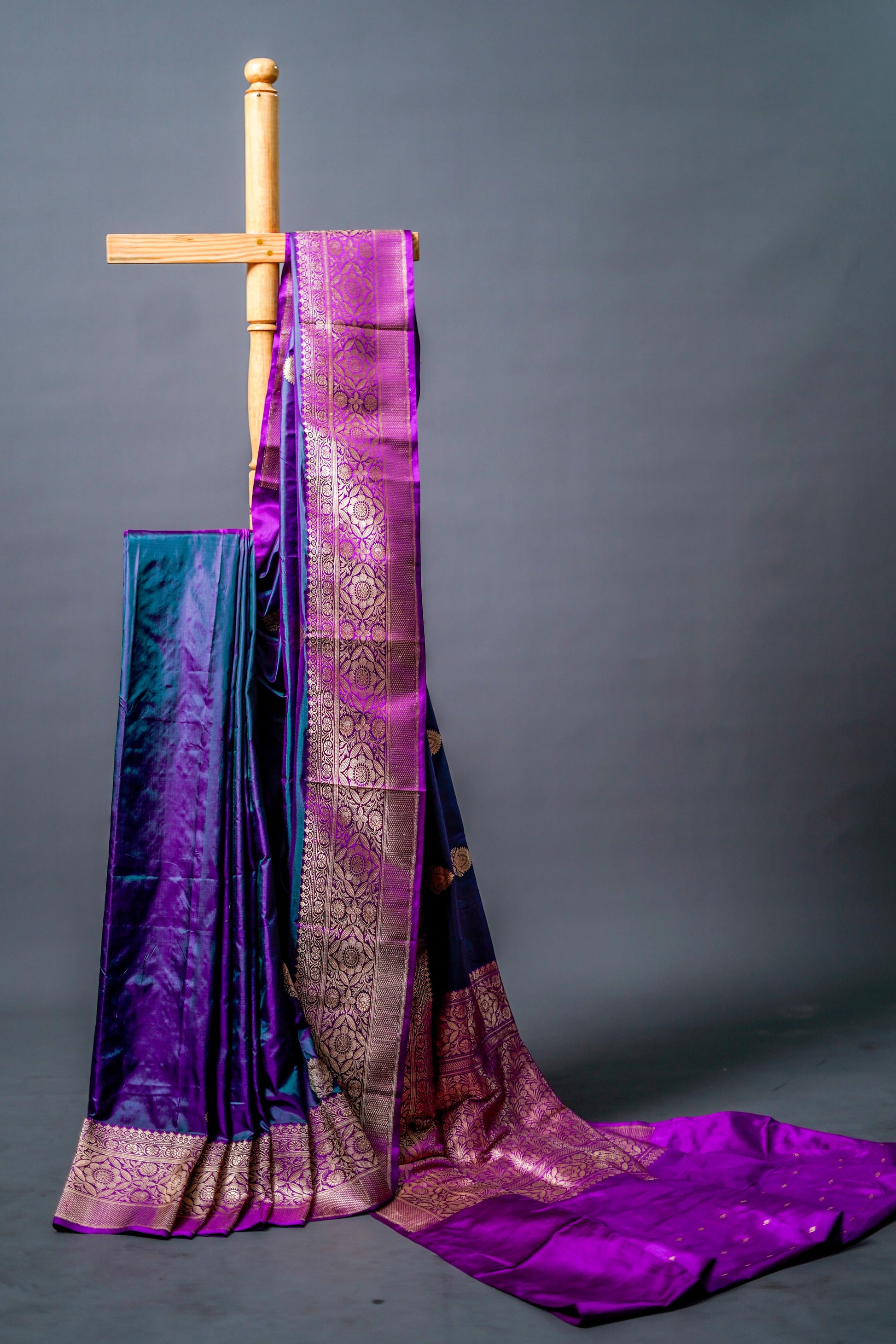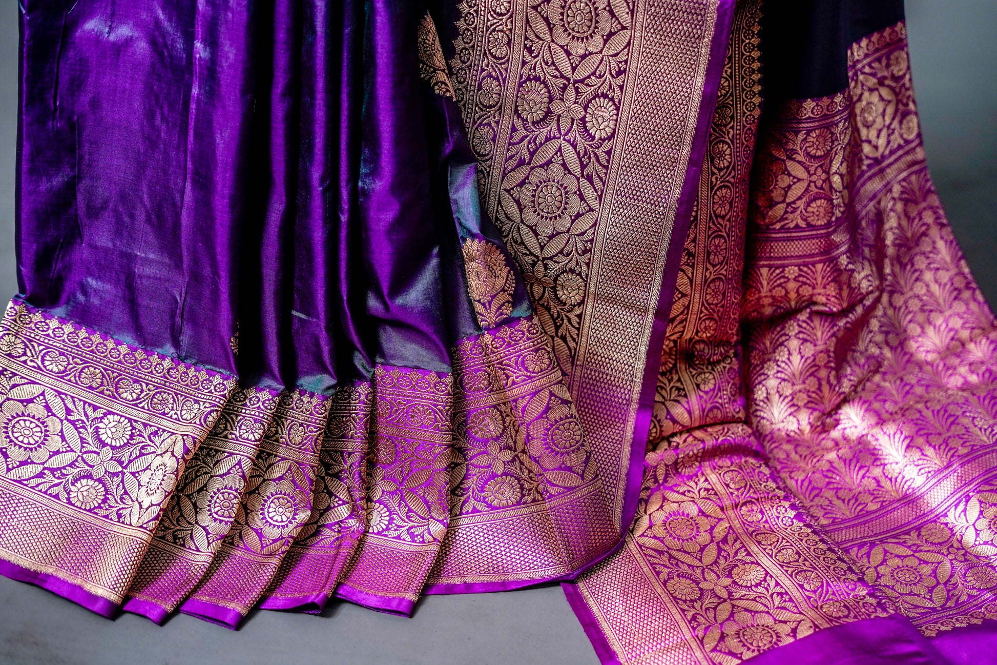 Katan Banarsi (Elegant blend of deep purple and black with golden zari detailing)
