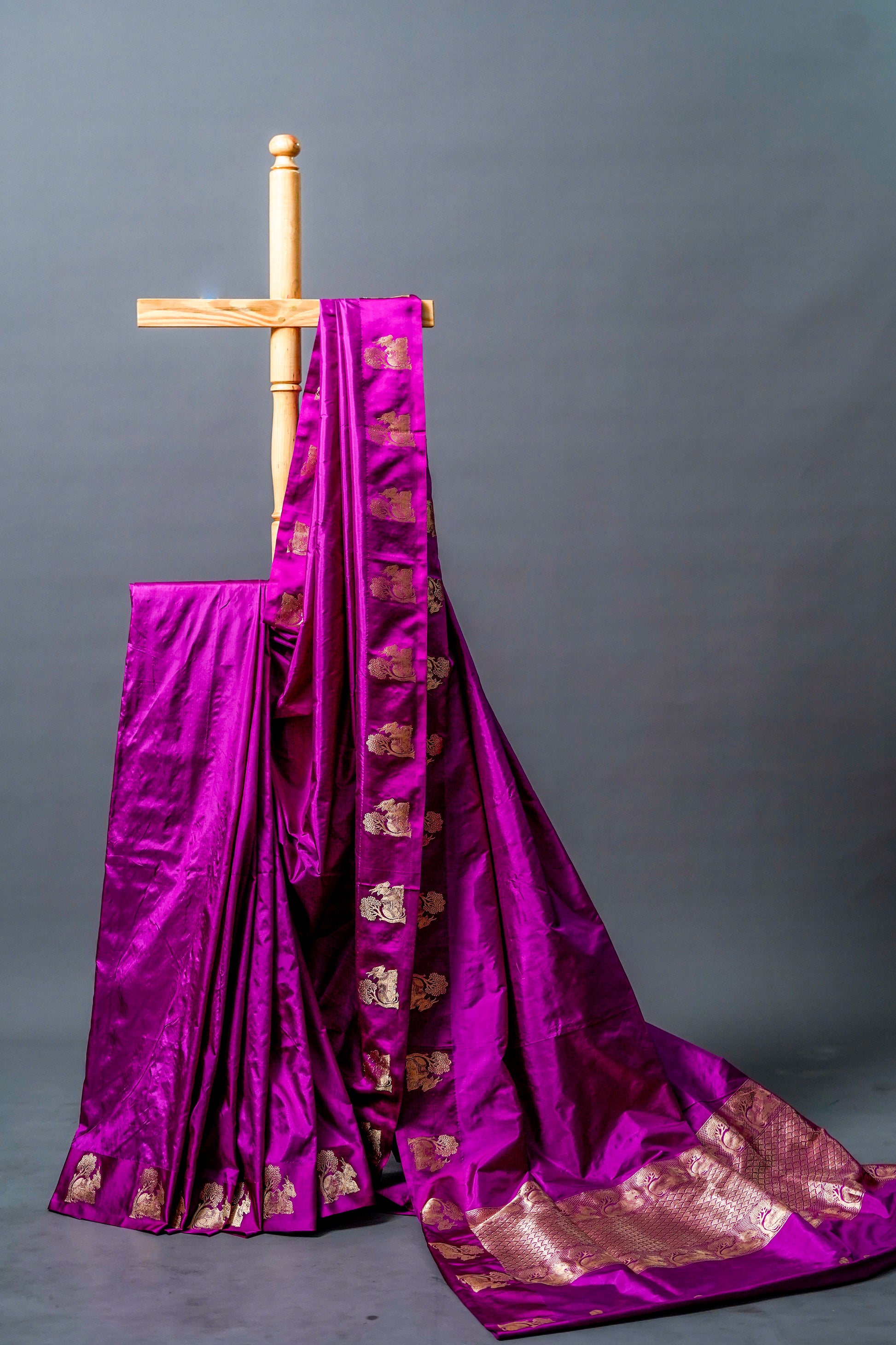 A symbol of elegance and tradition. Handwoven with fine pure silk, these sarees feature a smooth, lustrous texture and intricate zari work. Perfect for weddings and festive occasions, they embody timeless grace and heritage.