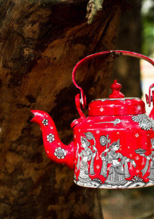 - Aluminum kettle painted with Pattachitra art is an exclusive piece and making it unique and different from other styles of paintings.