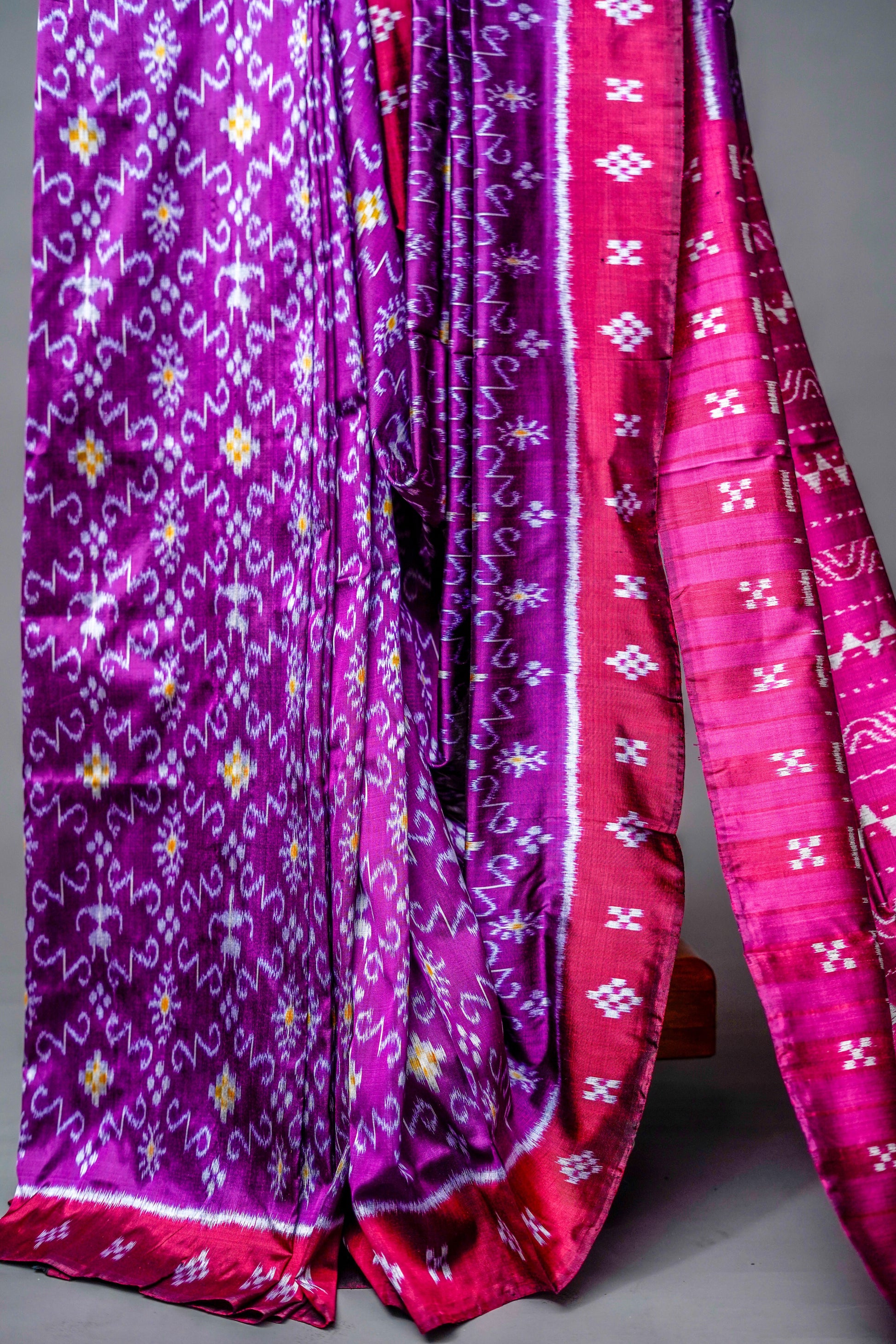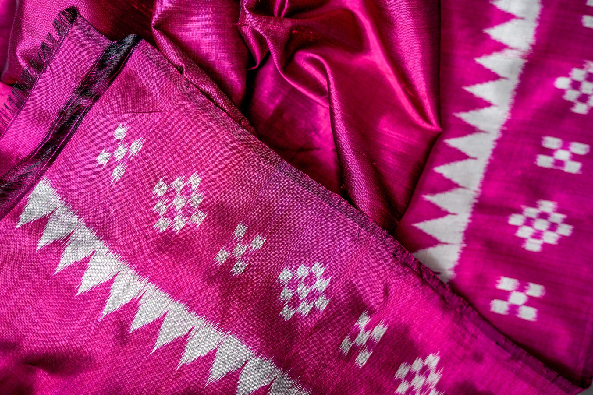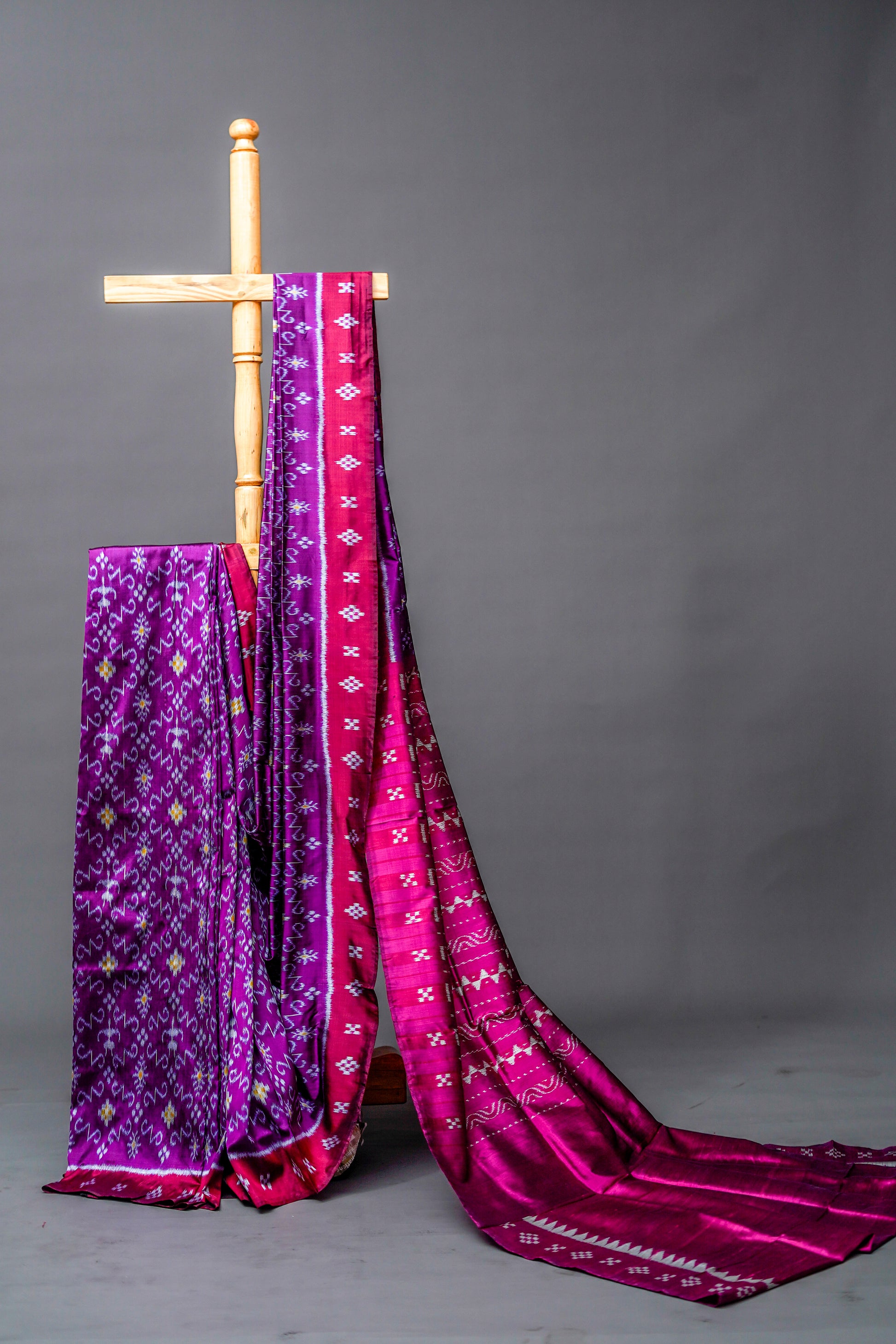 - Colour: Deep Purple with Magenta Border and White Ikat Motifs