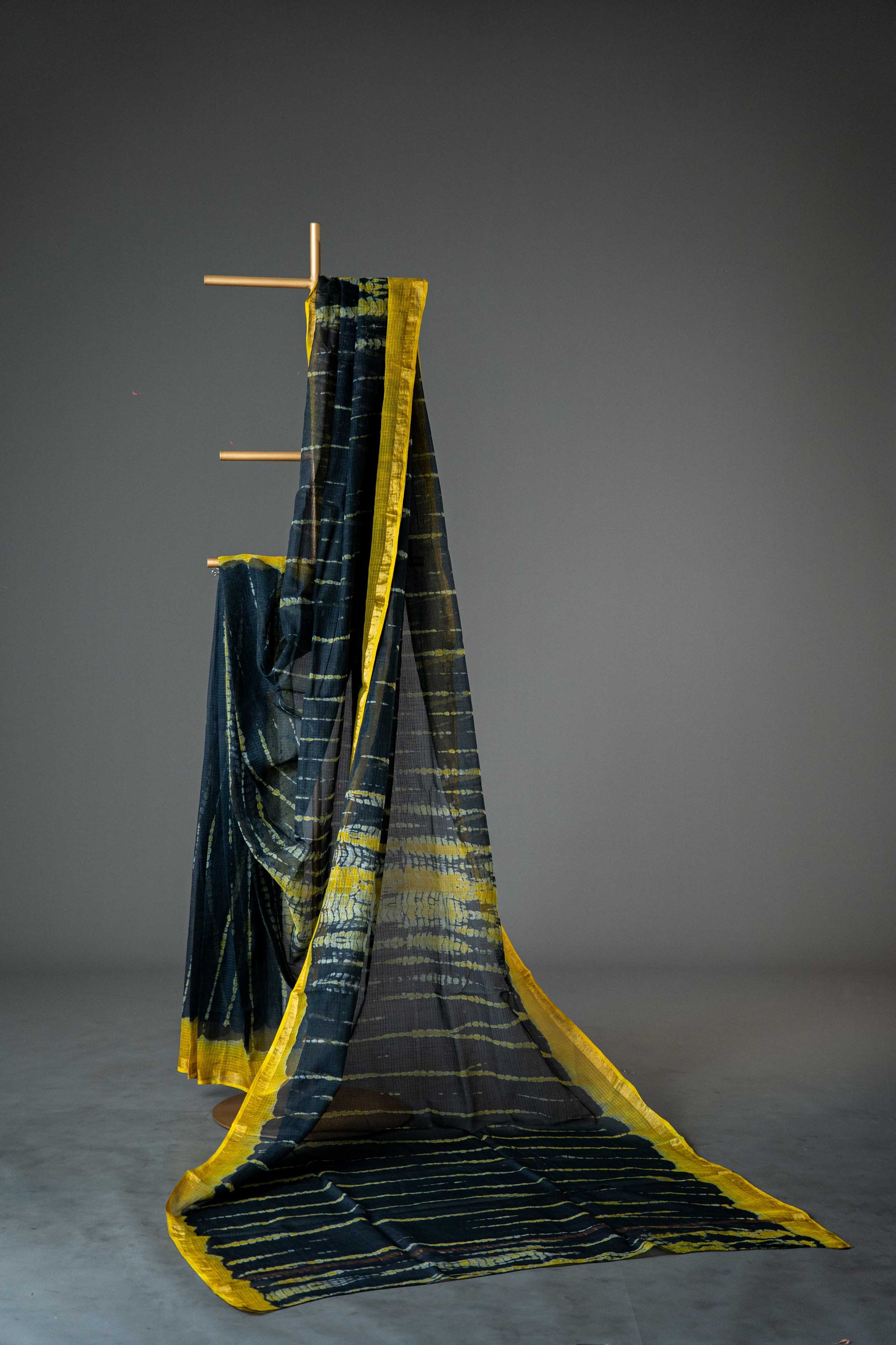 Kota Doria Saree – Black Hand Block Print, Bagru Cotton Handloom
