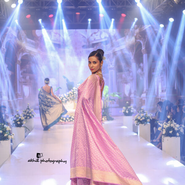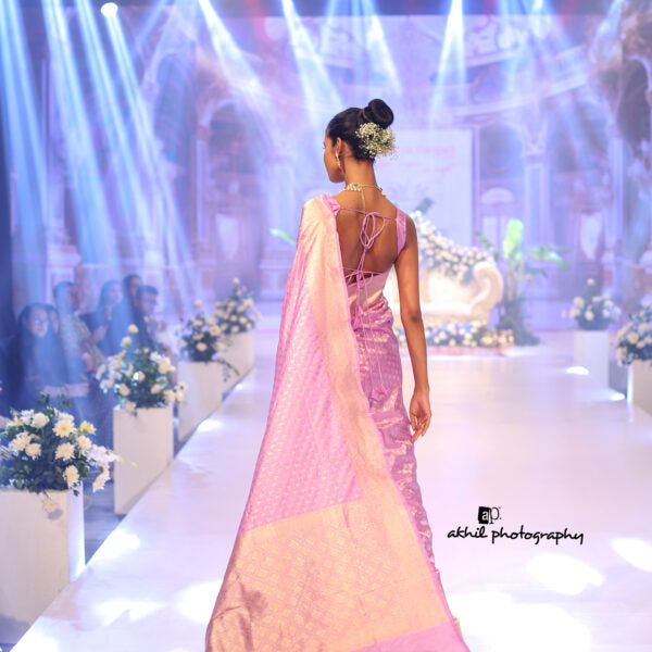 Lavender banarasi saree with Butti Design along with Zari Border is an ideal addition to your summer wear. Model wearing the blouse is for shoot purpose and separate matching blouse will be provided along with the saree.