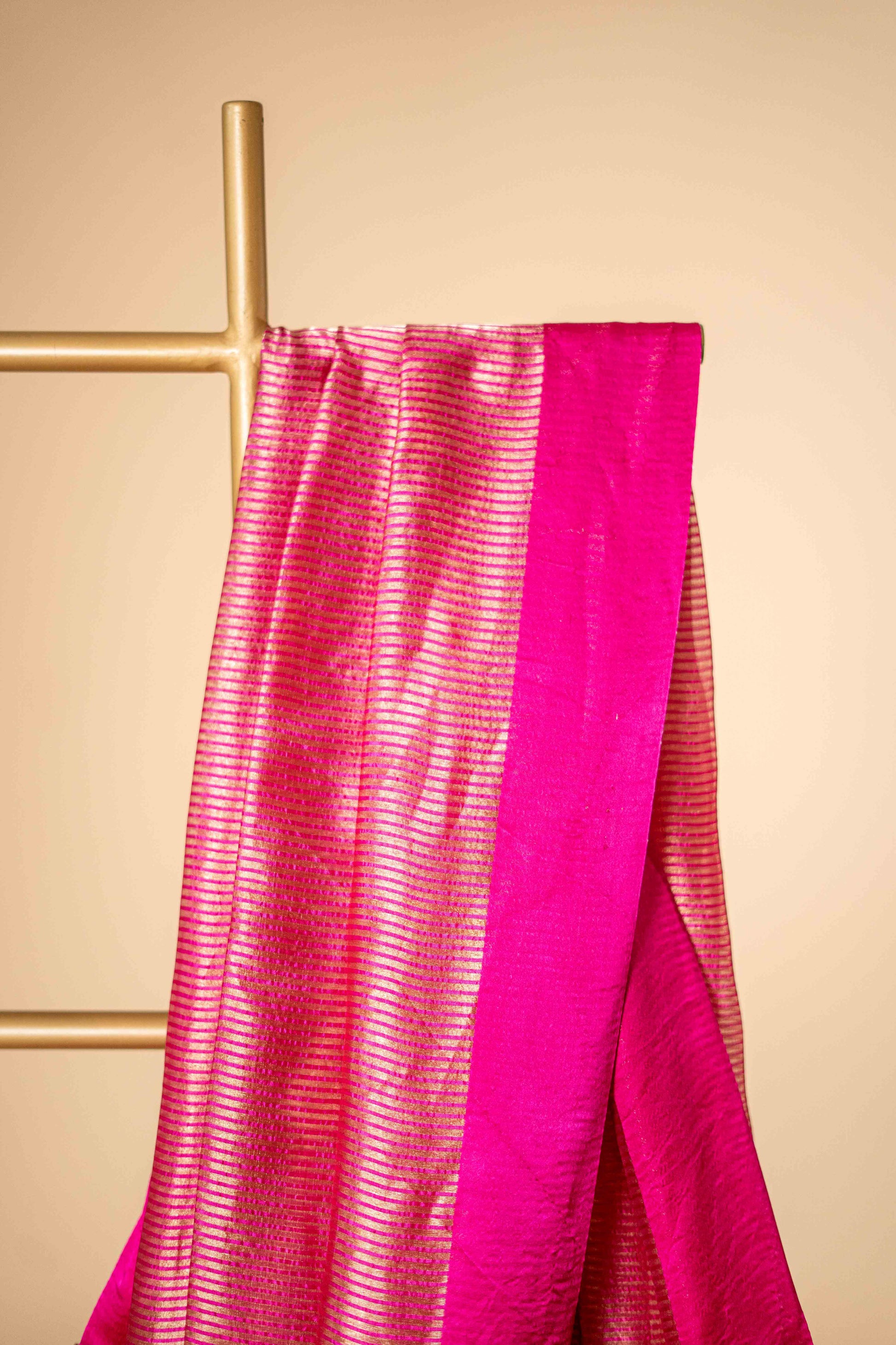Magenta Tissue Banarsi Silk with Zari Stripes