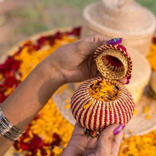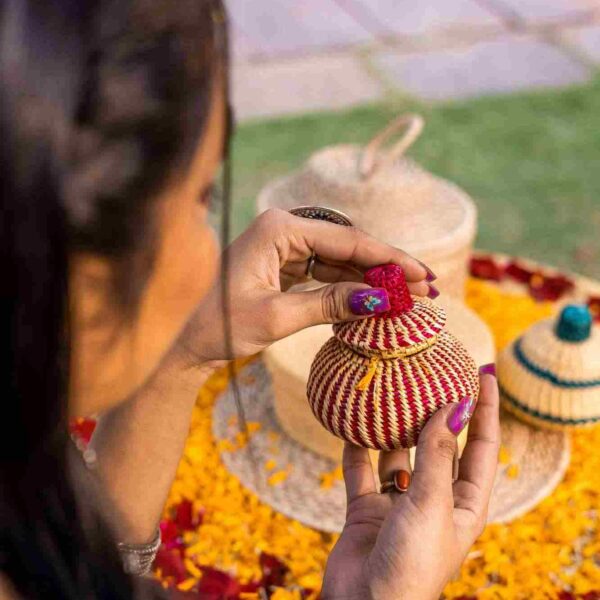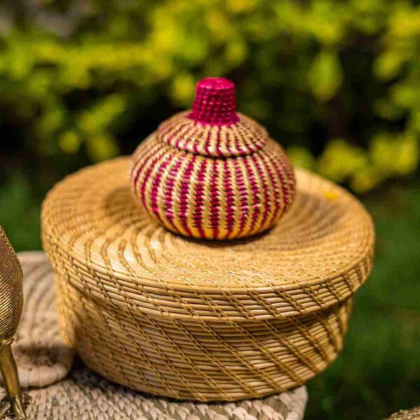 Handmade Golden Grass dome shaped Mini Round Box with Lid, well suited for storing small items in a most trendy way. Golden Grass – Type of grass that is used to produce a variety of handmade crafts Golden grass handicrafts have been used as utilitarian items in many parts of the state for centuries. The grass changes color from pale green to pale yellow to golden yellow as it dries, which is where it gets its name from.