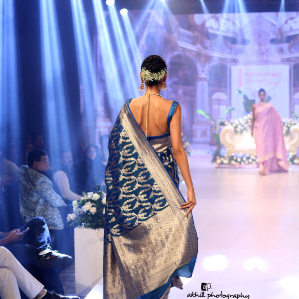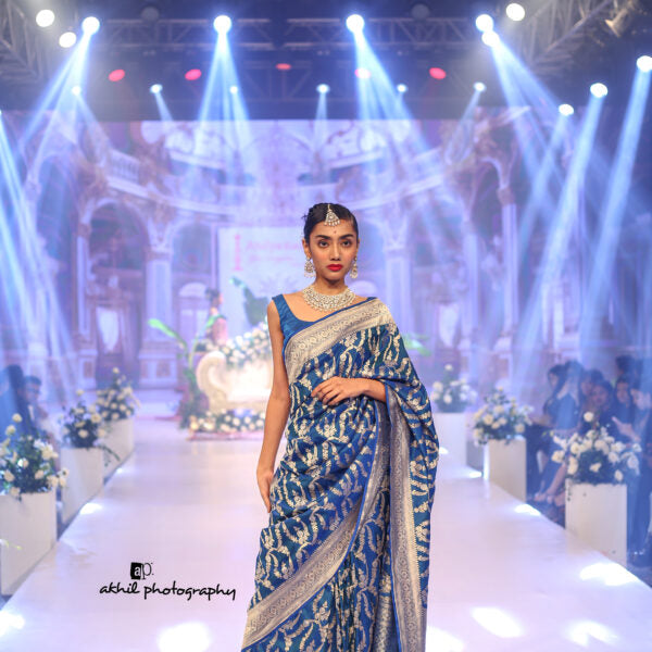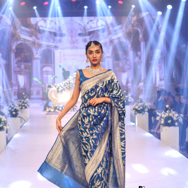 Royal Blue banarasi saree with Jangla Design inspired from traditional form of Banarasi weaving patterns along with Zari Border adding elegance to the saree. Model wearing the blouse is for shoot purpose and separate matching blouse will be provided along with the saree.27500