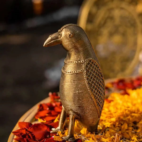 Hand made Dhokra Penguin. A hope resilience ,brings goodluck and fortune bird, a very grateful showcase for your indoor. \nDhokra ? A living bronze age craft that is still alive at the hands of artisans of Odisha \nSaptasajya are small villages in Odisha where these crafts have flourished since ages but the artisans have been overshadowed by middlemen. AtulyaKarigari works with Artisans and makes every effort to inform and educate them about new designs so that they can explore high level and survive in the market.
