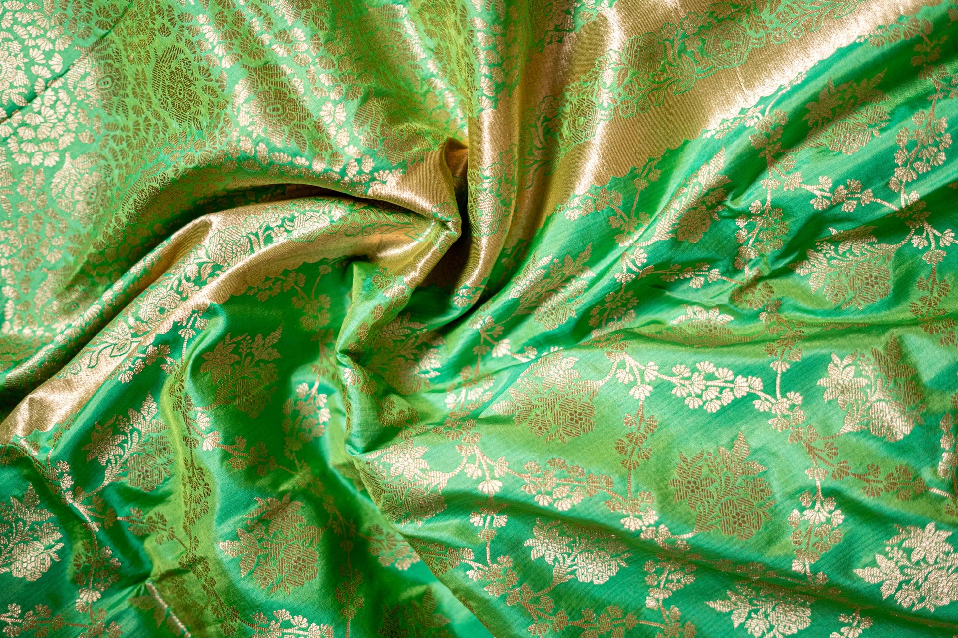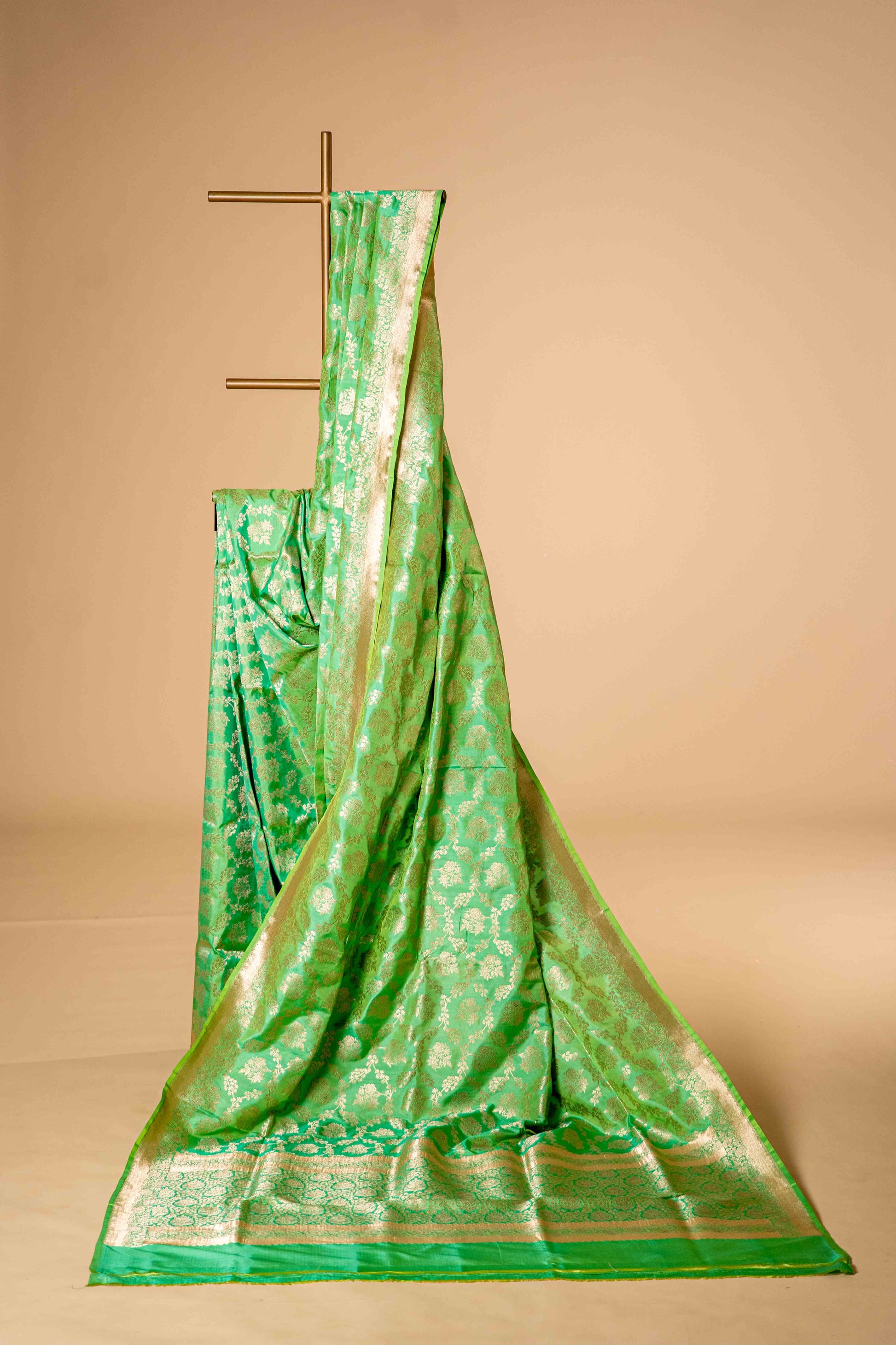 Pure Banarsi Katan Silk heavy zari bel work all over the saree.