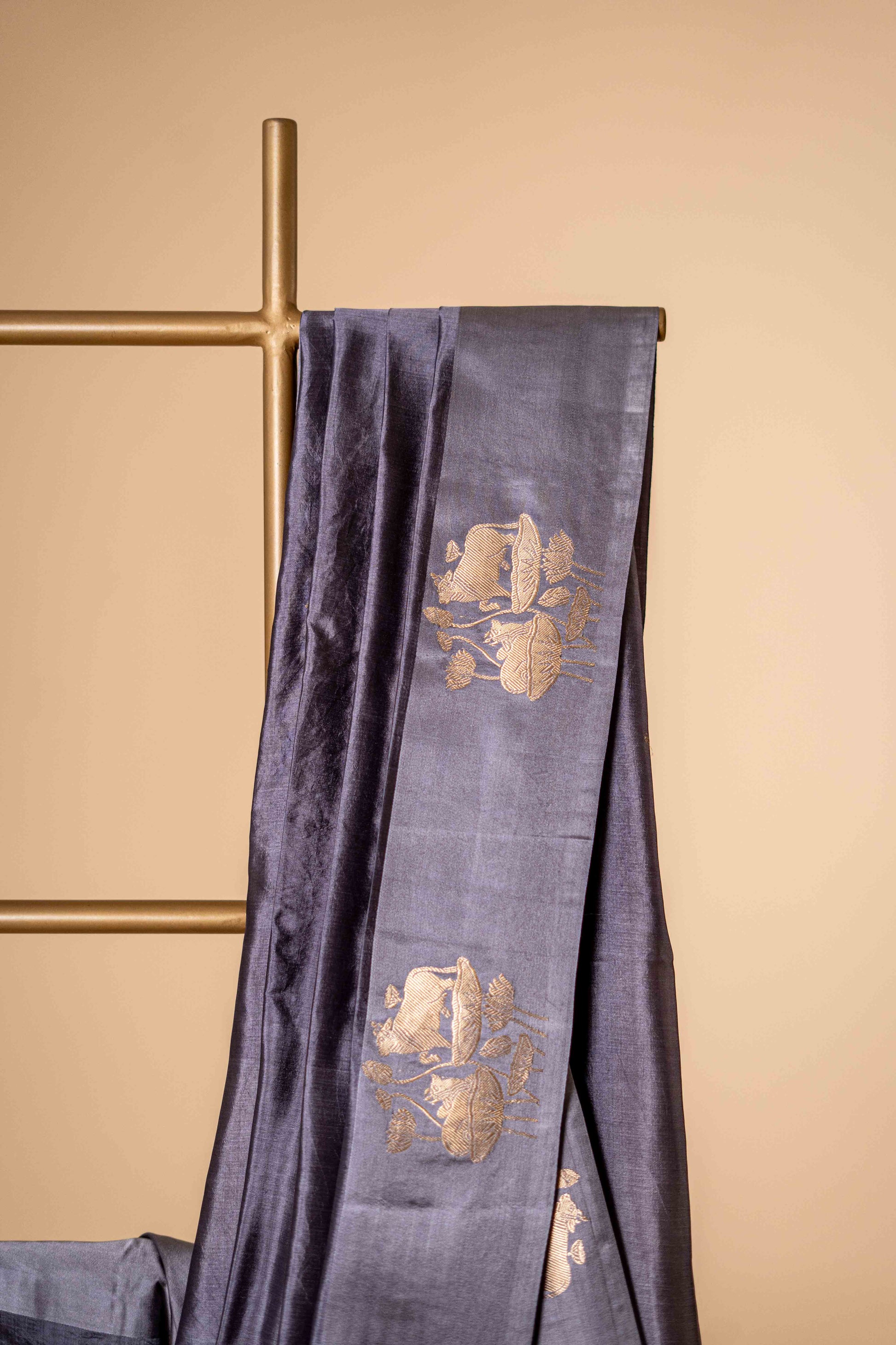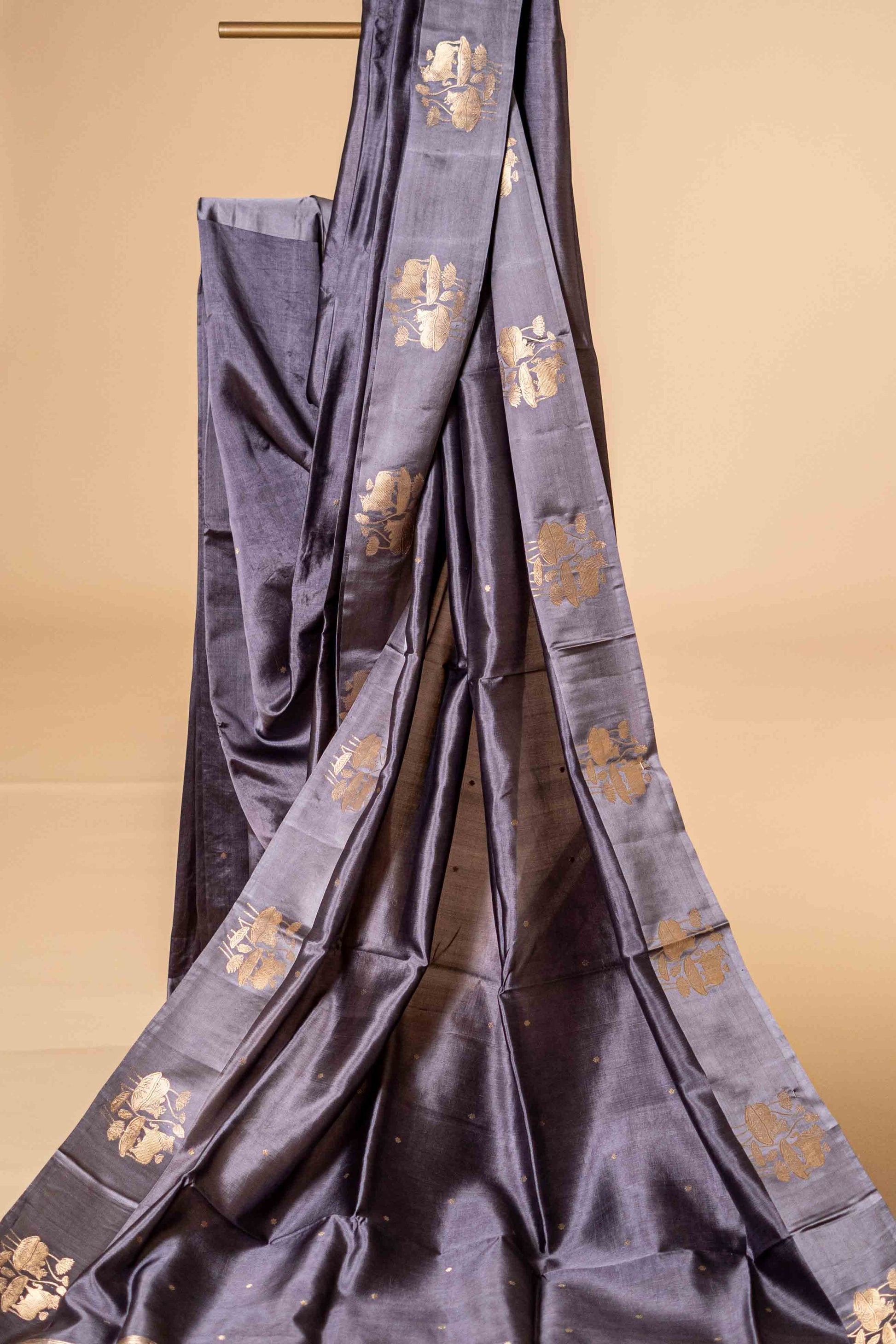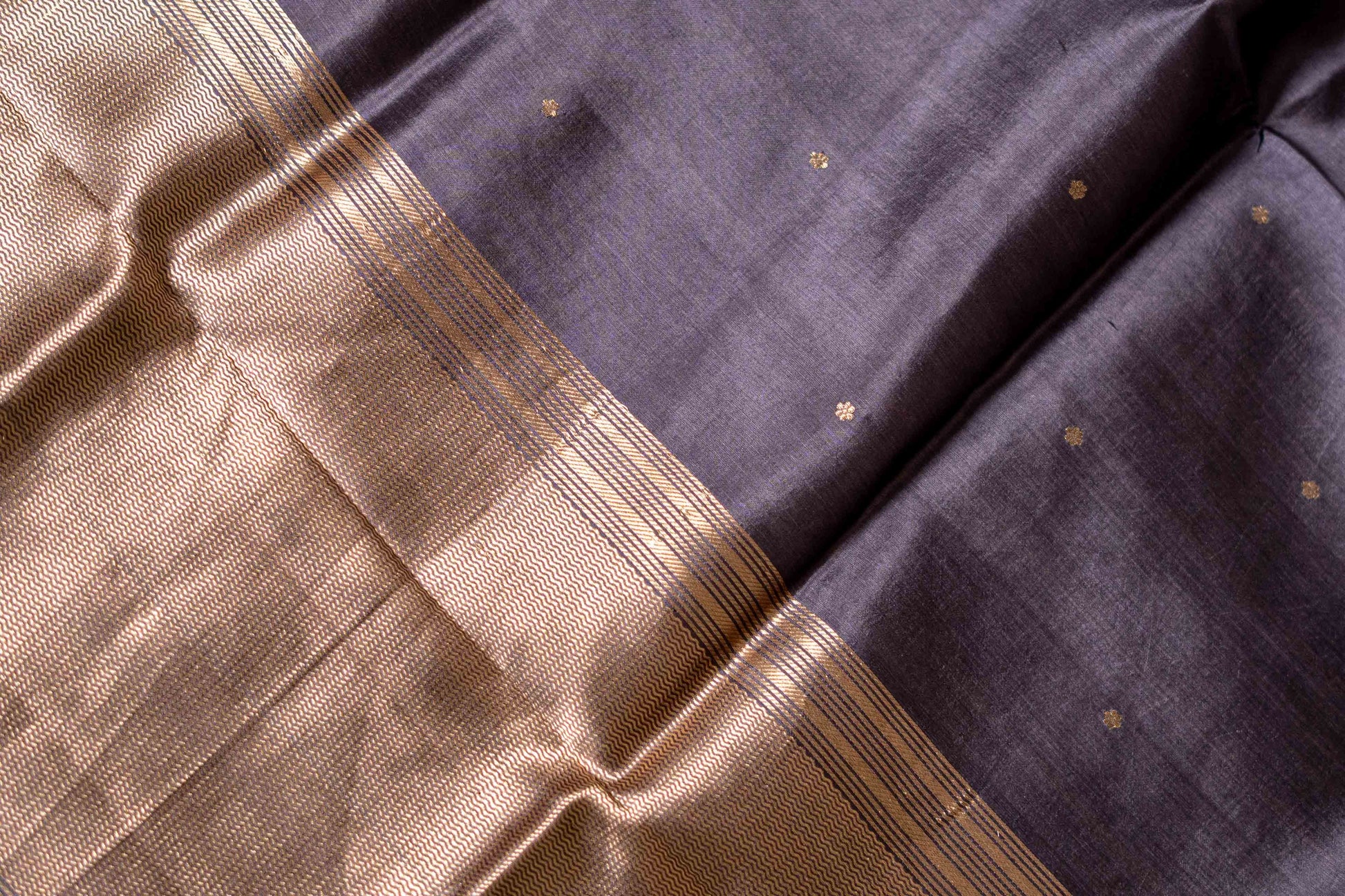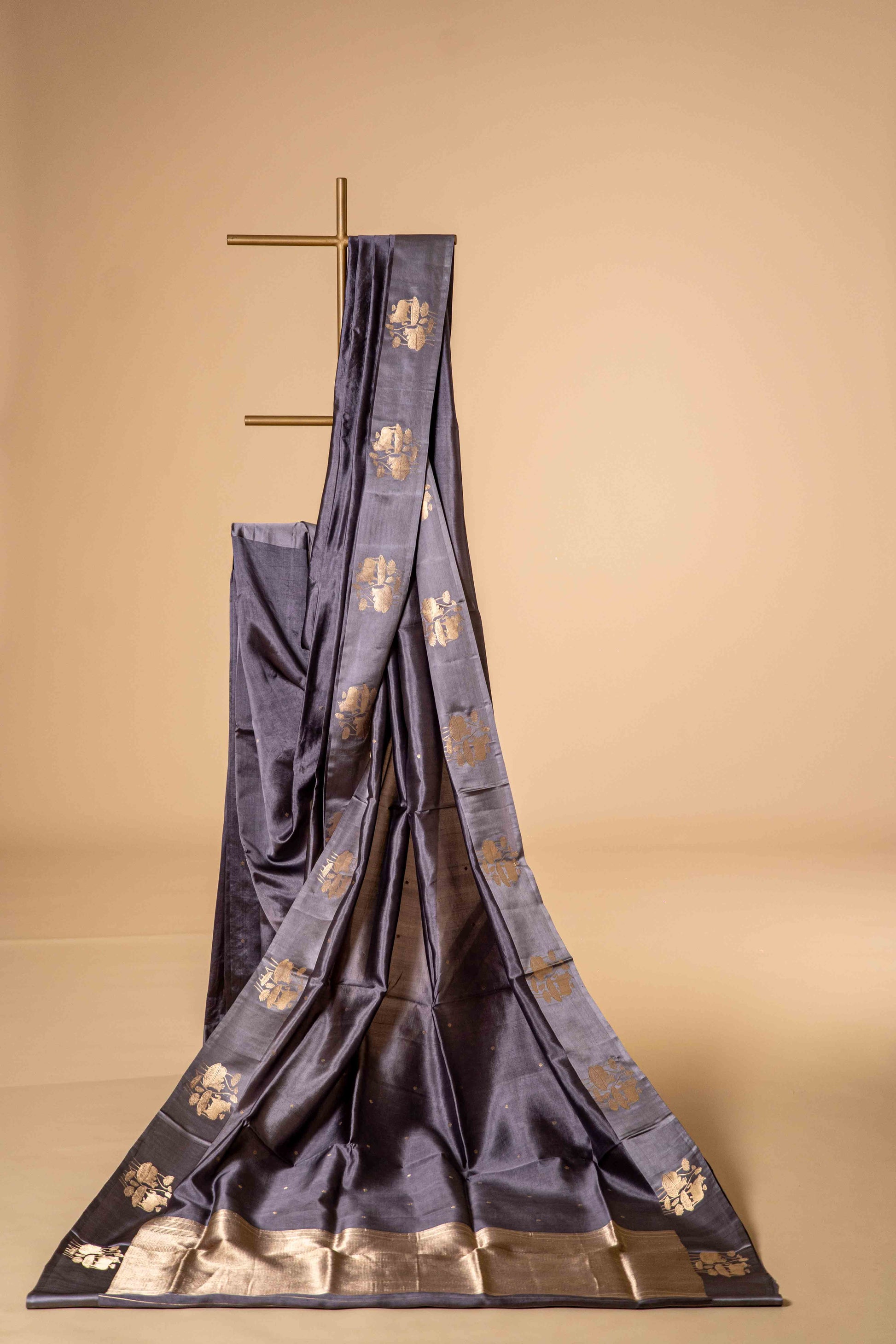 Pure Banarsi silk light weighted with booti and open border. It is easy to carry yet traditional.