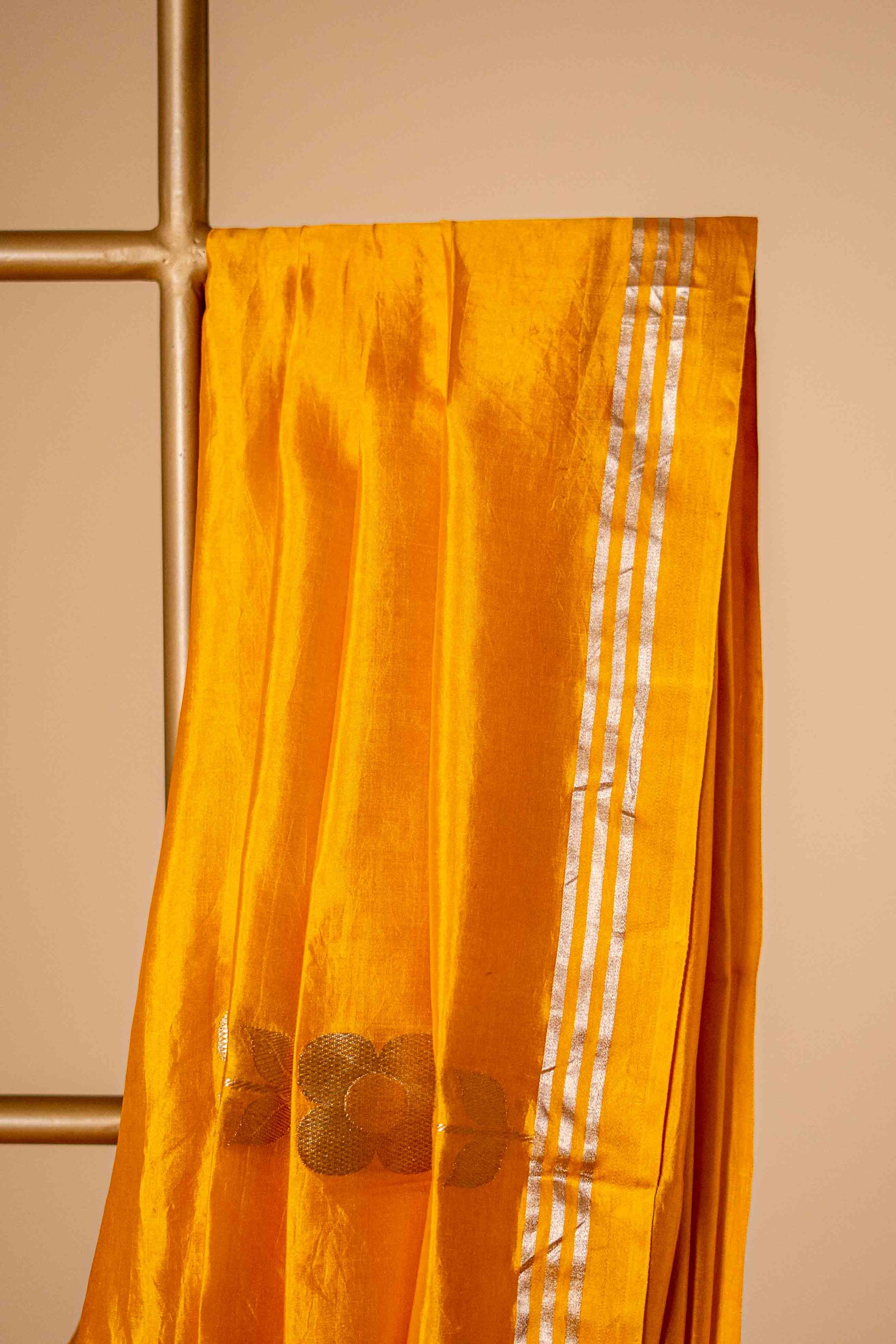 Pure crepe banarsi with golden traditional border. Easy to drape saree with traditional elegance.