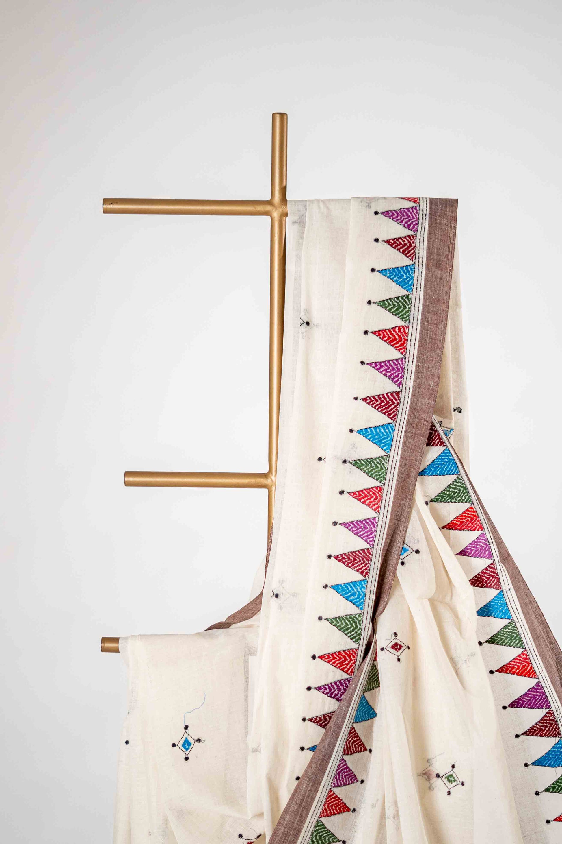 Pure Kantha Cotton Saree with Multicoloured Hand Embroidery
