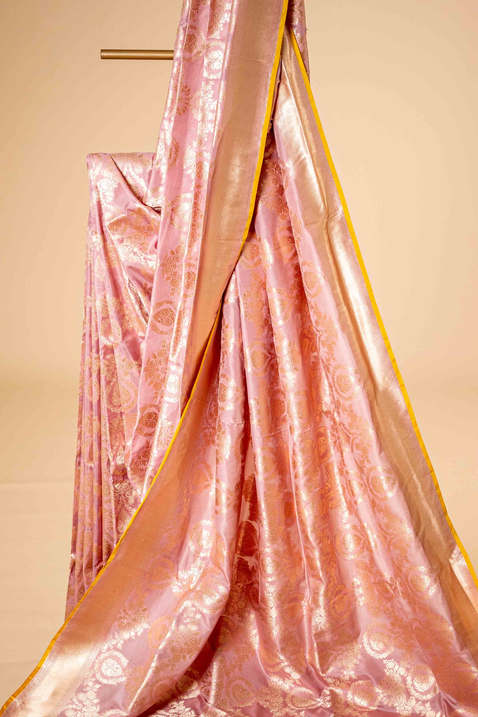 Pure Katan banarsi with traditional border. Betel leaf zari work is ideal for your wedding collection.