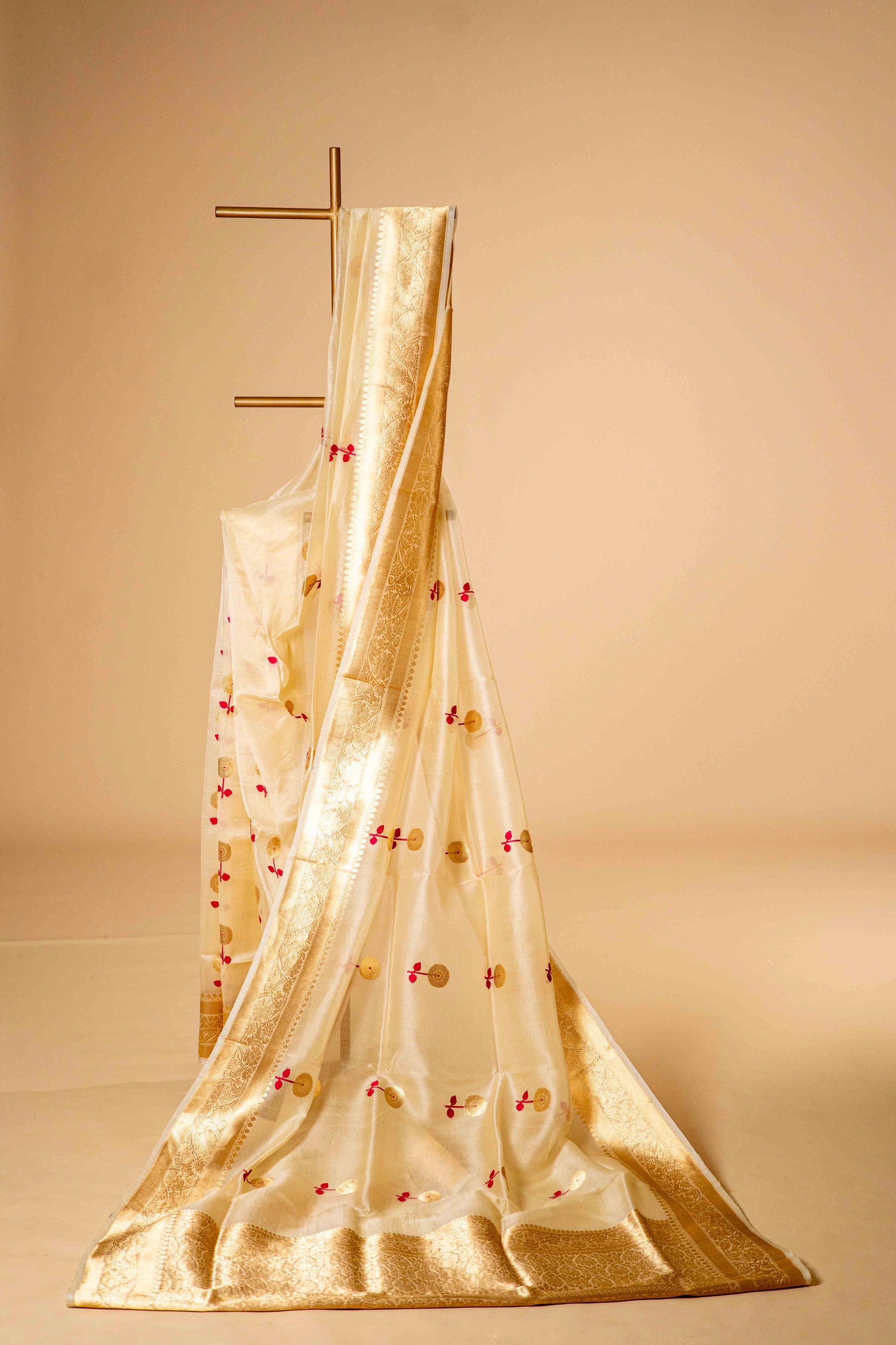 Pure Kora Silk light weighted with flower and leaf motif along with traditional border.