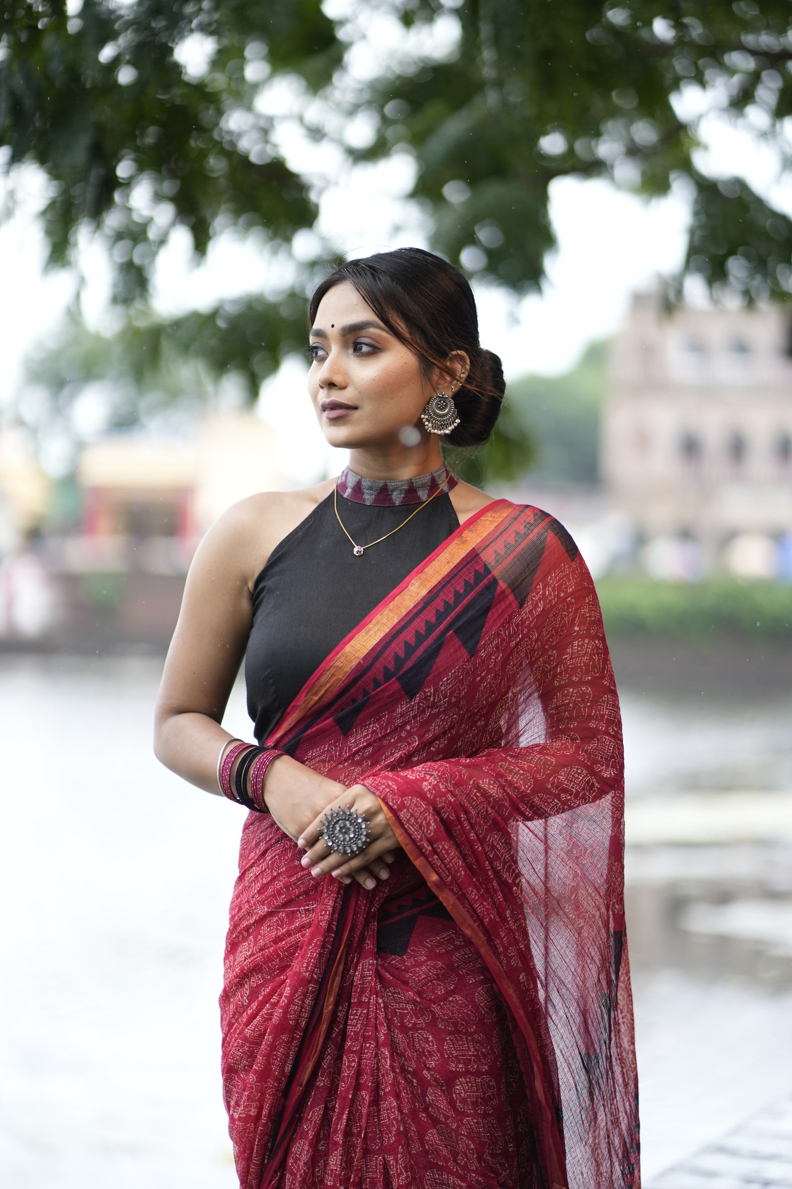 Pure Moonga Kota (Deep Crimson Red with Black and Maroon)