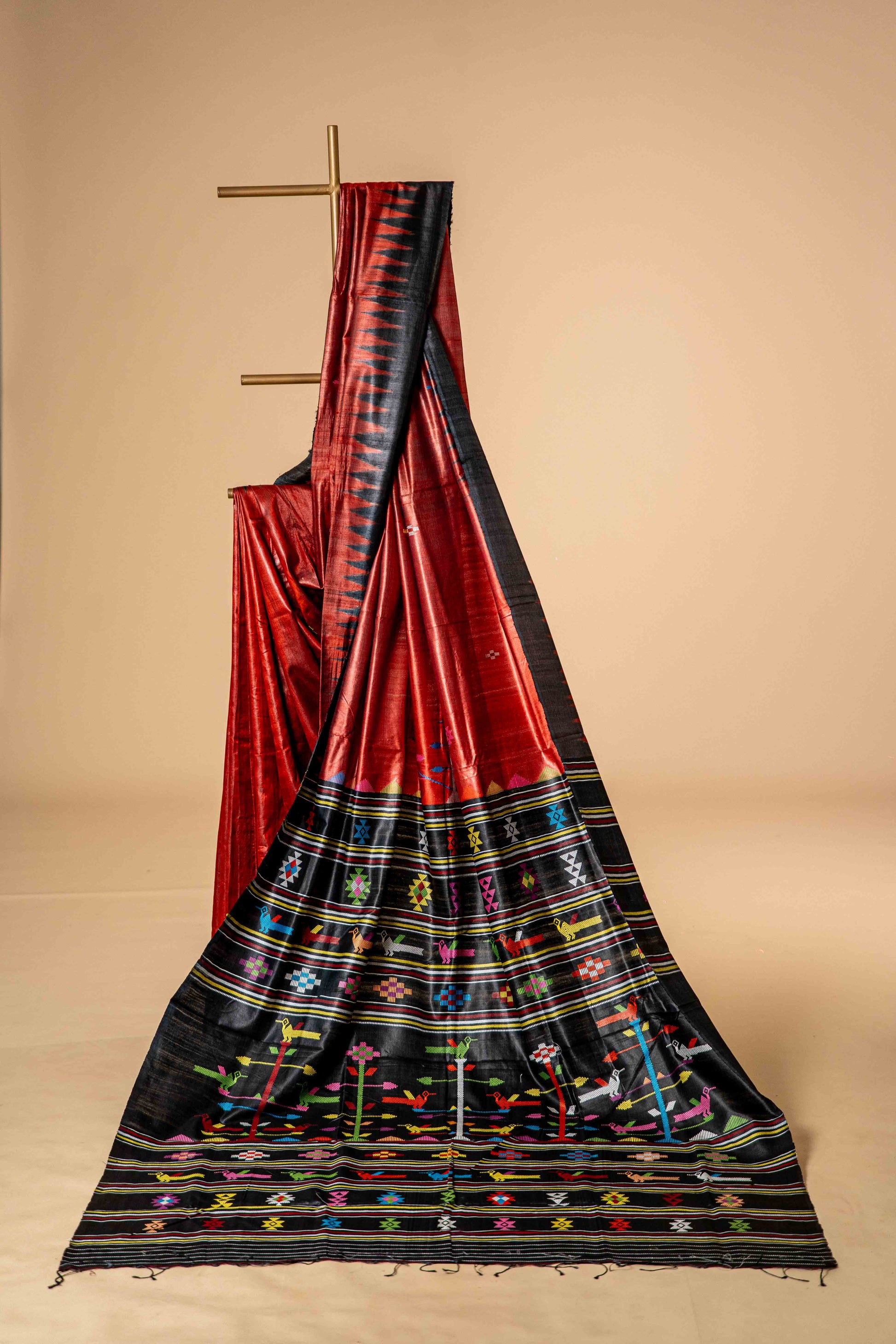 Pure Tusser Silk with Dolabedi pallu. It is one of the heritage piece.