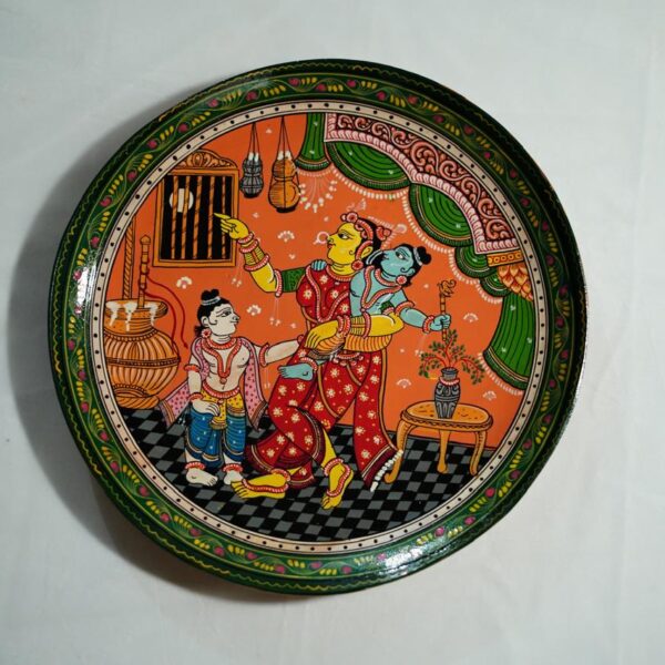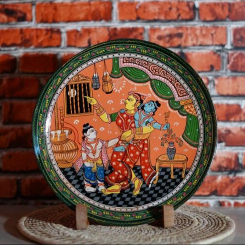 Mahogany wooden tray with pattachitra painting along with stand. Wooden craft can do wonders. Wooden handpainted tray with stand for your study.You can transform a relatively simple trays, even the unfinished wooden trays into quite beautiful decorative trays with the help of painting .