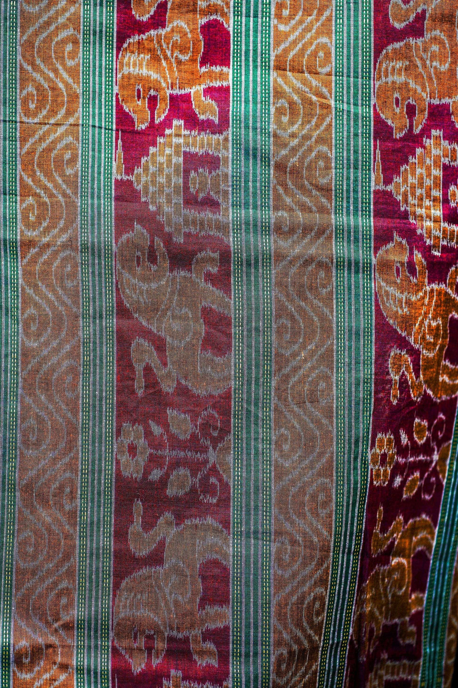 Sambalpuri Cotton from Odisha features traditional handwoven motifs, vibrant colors, and exquisite craftsmanship.