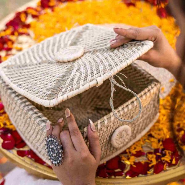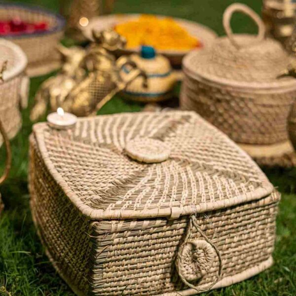 Handmade Sabai Grass Square Box which is mostly used as a utility storage box, generally used at dressing table for women cosmetics.